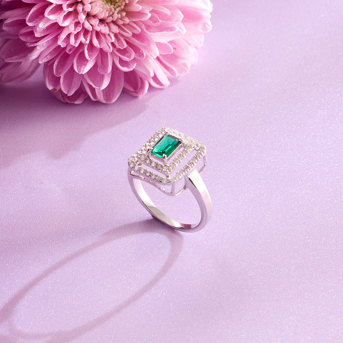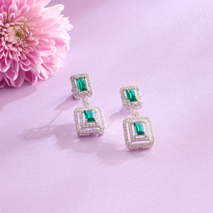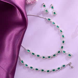 A green gemstone necklace with cubic zirconia accents and drop earrings, crafted in rhodium-plated hallmarked silver. Our TVisha Collection unites heritage, elegance, and modern versatility for timeless statement wear.