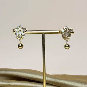 Crafted in 92.5 silver with mother-of-pearl inlay and gold-toned finish, these Sukti earrings embody quiet tradition-timeless, graceful, and rooted in memory. A design that speaks softly yet endures beautifully.