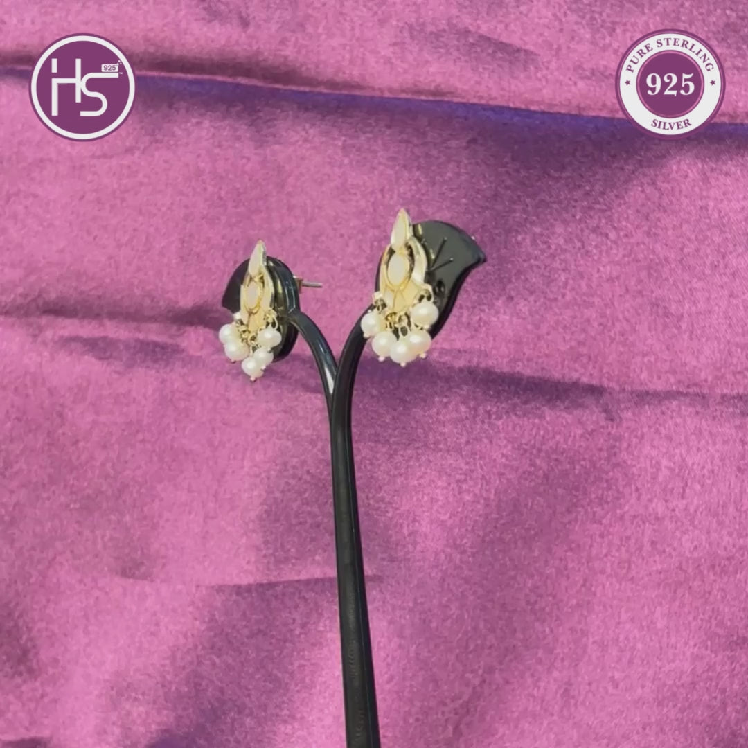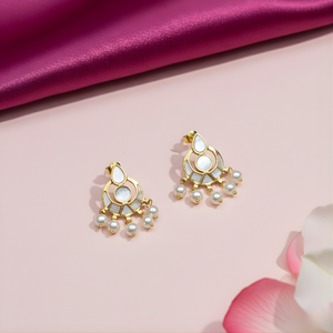 Handcrafted in 92.5 silver with gold-toned finish and mother-of-pearl inlay, these earrings from the Sukti collection blend timeless elegance with modern grace-soft, luminous, and quietly regal.