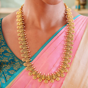 Every coin on this kasu mala necklace holds the serene imprint of Goddess Lakshmi, a divine symbol of abundance, grace, and generational protection. You’ll feel that energy as it rests close to your heart, connecting you to a lineage of strength and devotion.